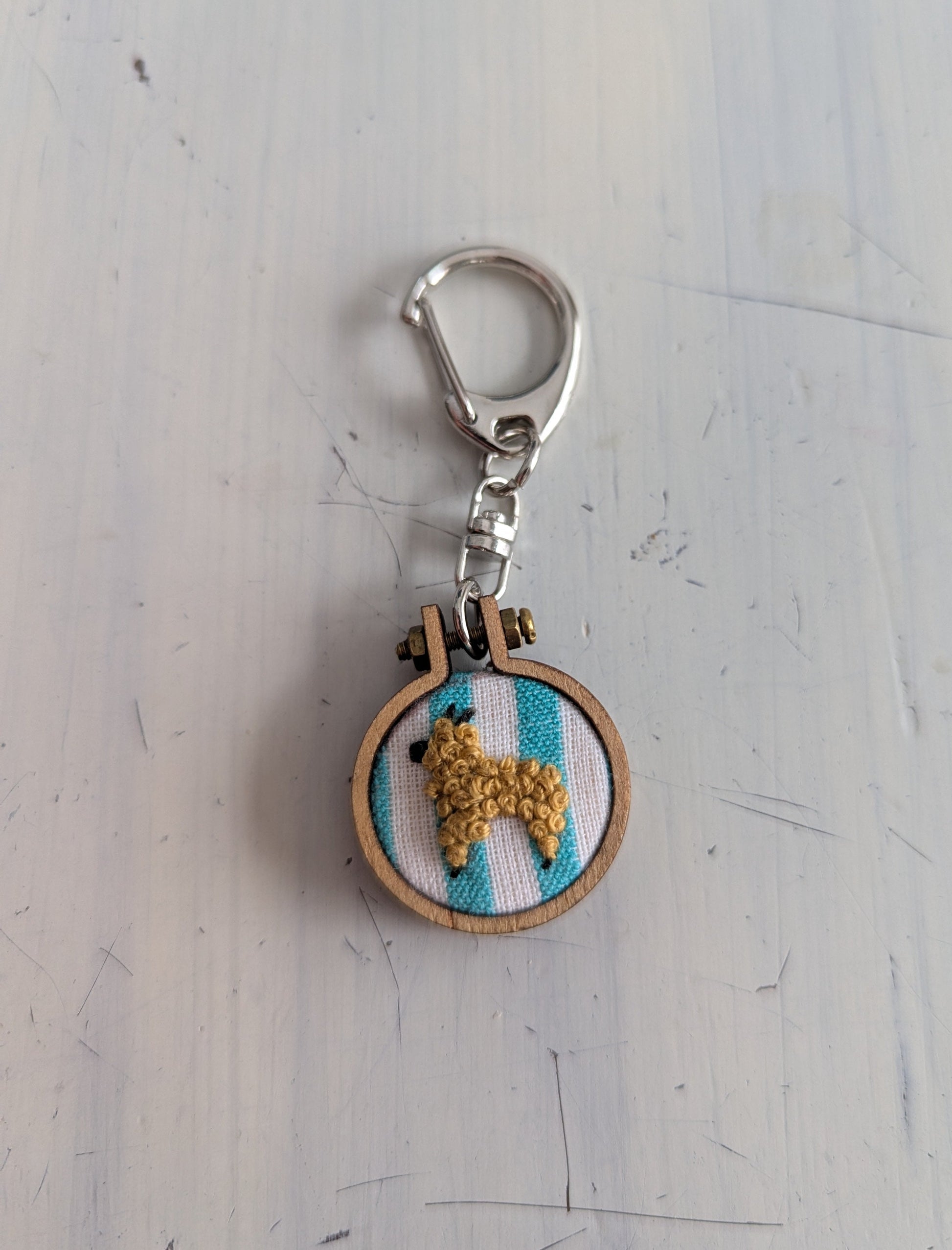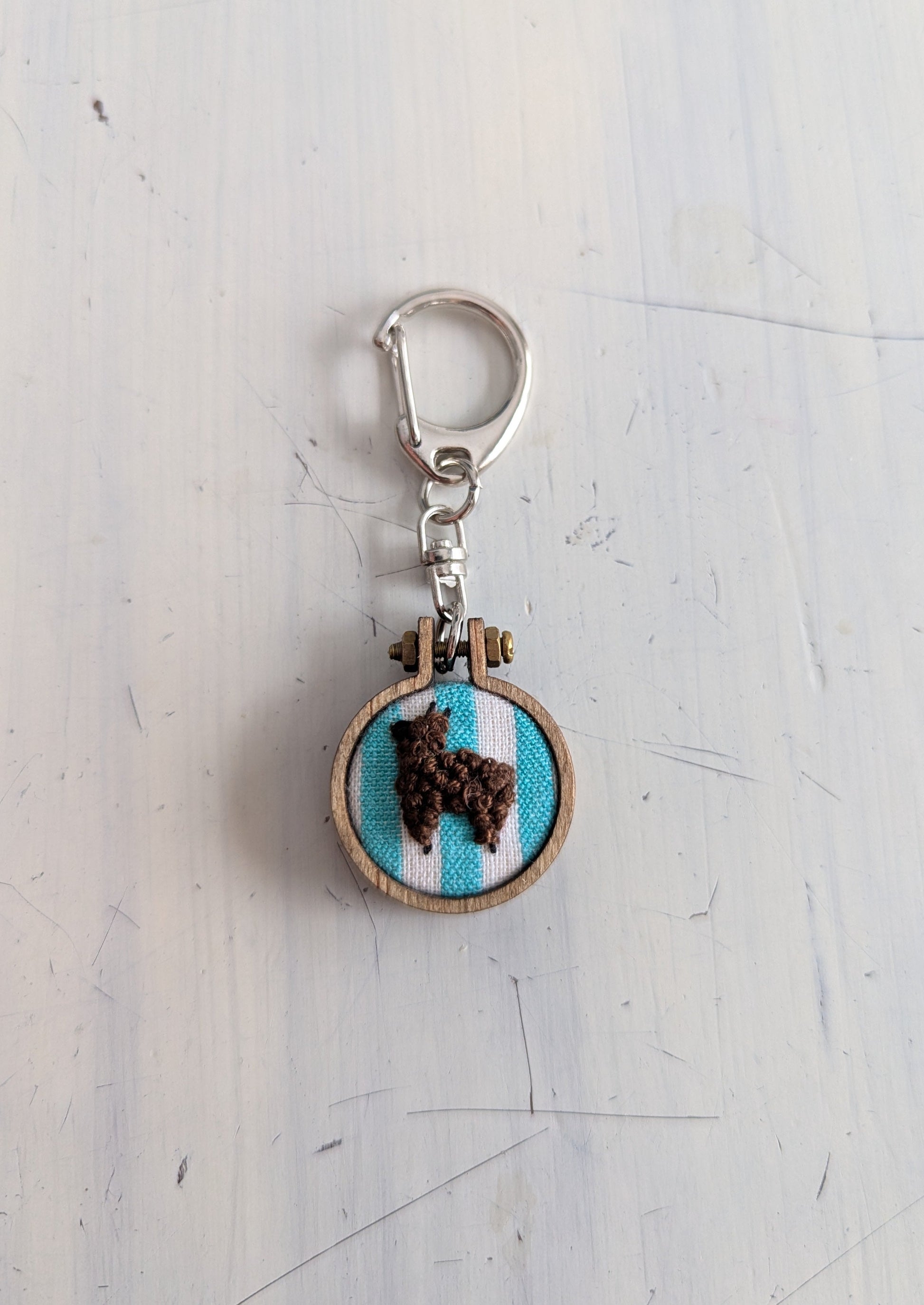 Keychains - Embroidery Alpaca (Teal Stripe Background)
