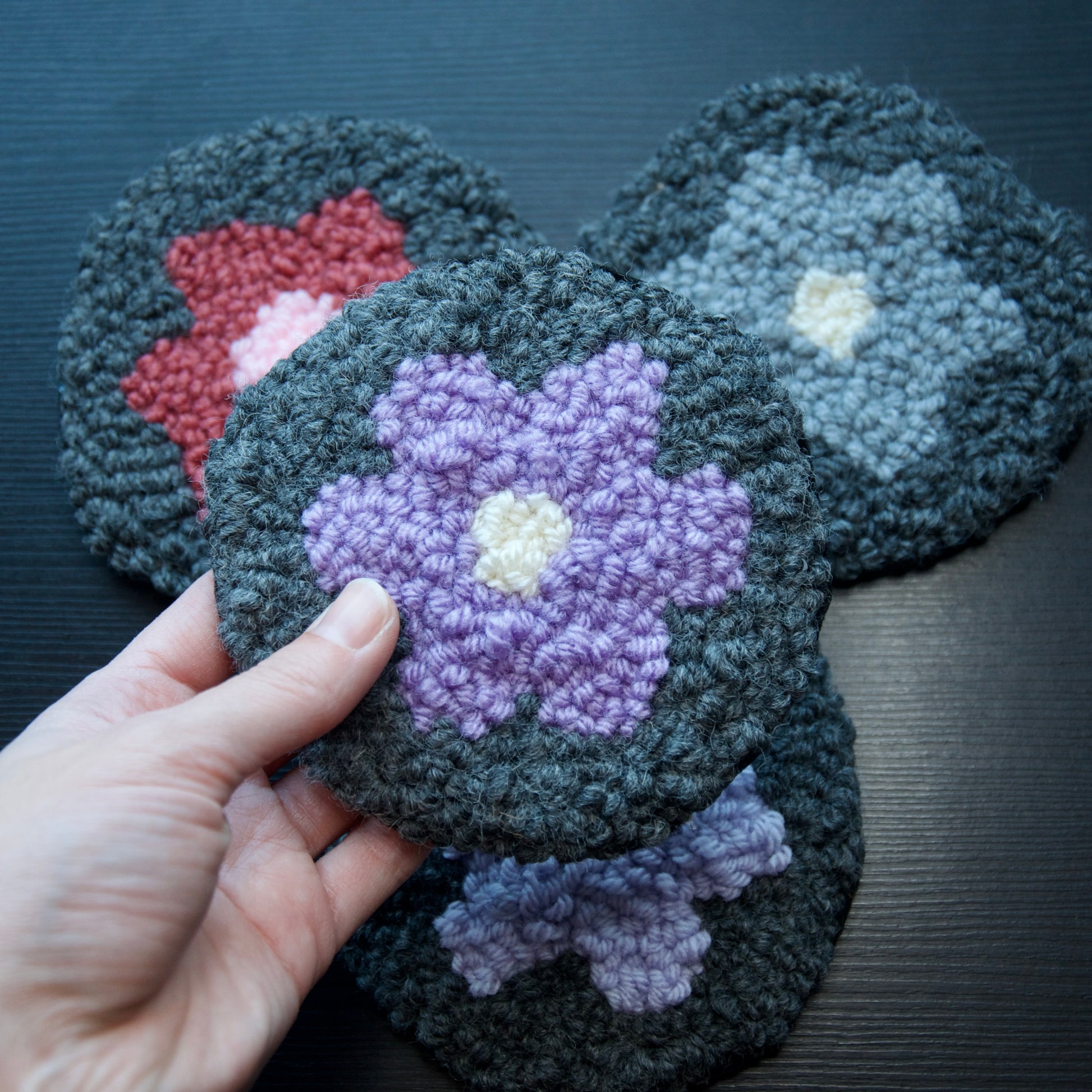 Brighten up your space with a cute, fluffy, punch needle coaster!